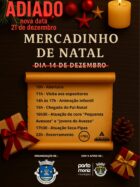 Caros(as) fregueses e visitantes, Lamentamos informar que o Mercadinho de Natal, previsto para o dia 14 de dezembro (domingo), foi adiado para o dia 21 de dezembro, devido às condições…